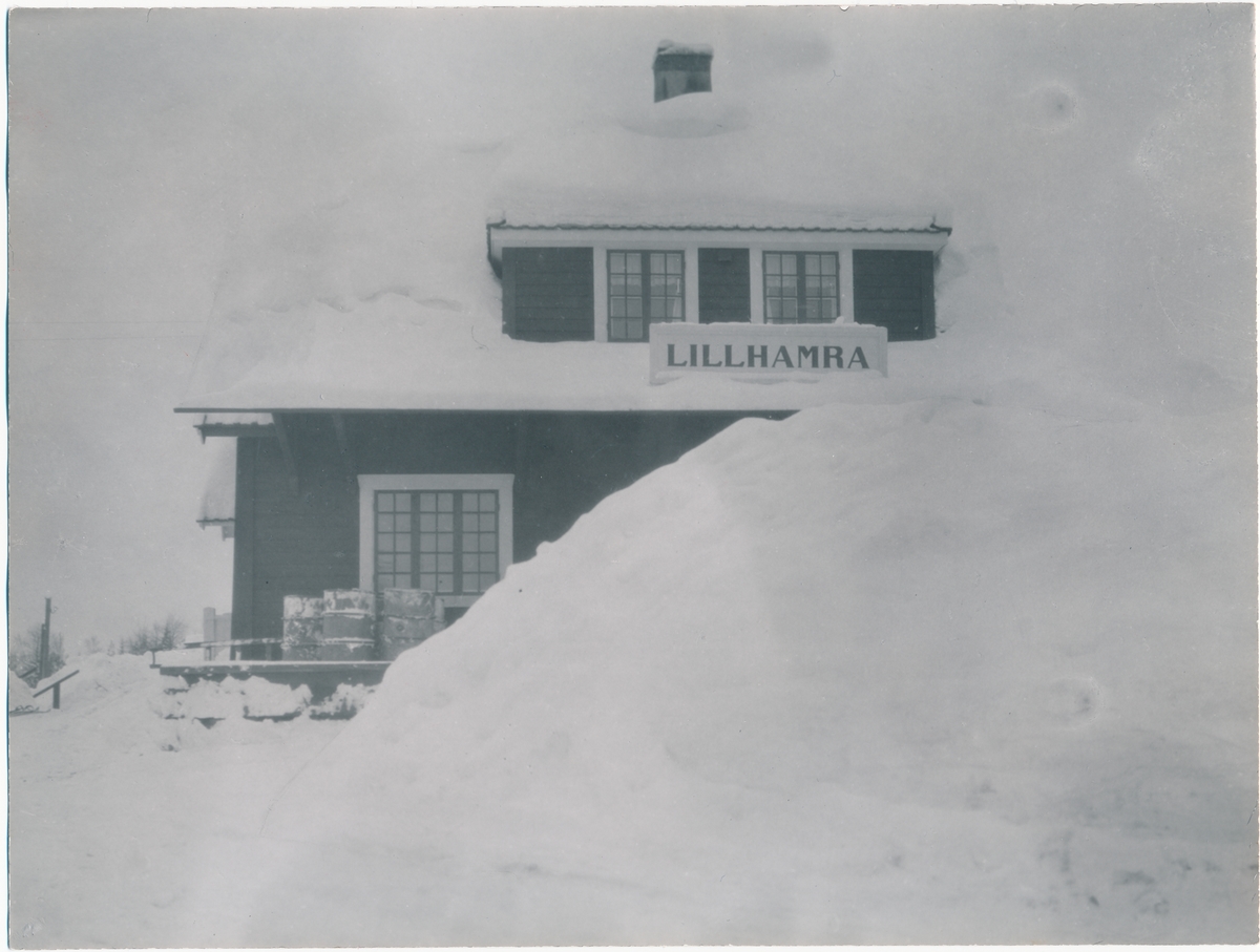 Vinterbild på Lillhamra stationshus, linjen Orsa-Sveg.