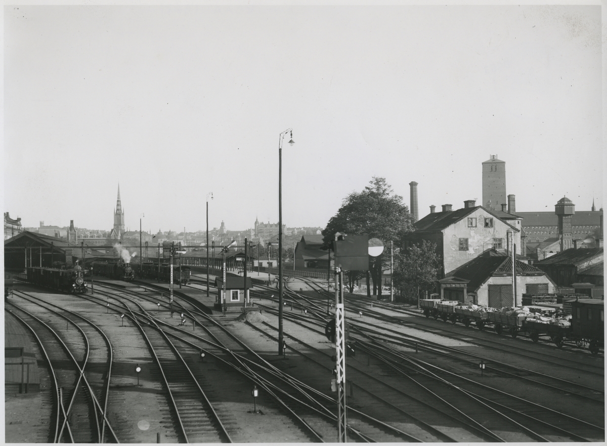 Statens Järnvägar, SJ, Bangården från Kungsbron 2, början av 1920 talet Stadshuset torn ej färdigt det invigdes 1923.
