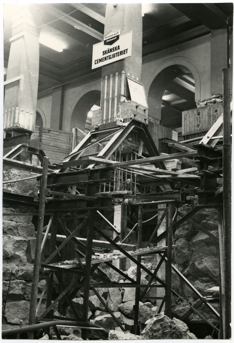 Statens Järnvägar, SJ, Stockholm centralstation ombyggnaden, avväxling av pelare i östra väggen.