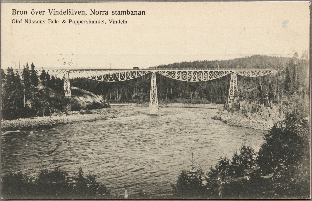 Järnvägsbro över Vindelälven på linjen mellan Vindeln och Tvärålund.