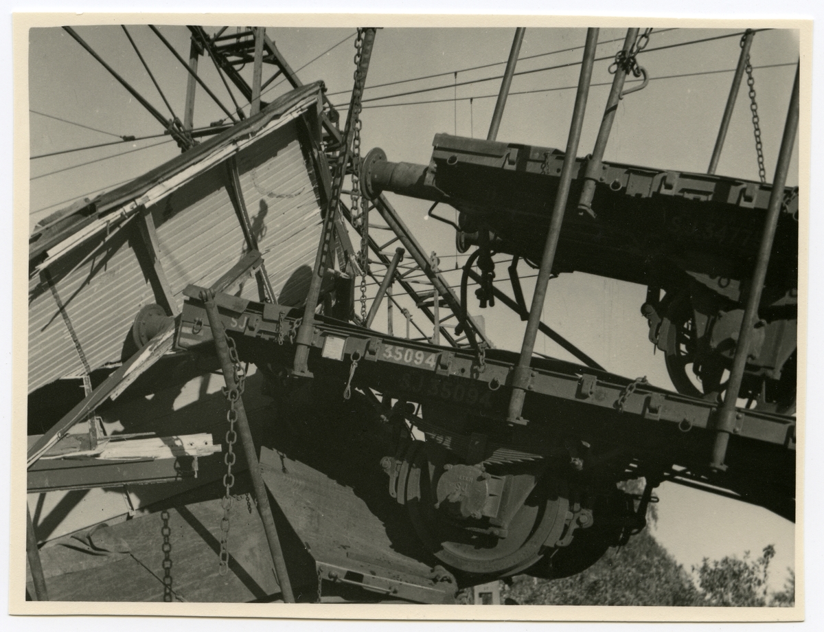 Urspårning natten mellan 2 och 3 oktober 1948. Godsvagn SJ 35094 och 34775 vagn.