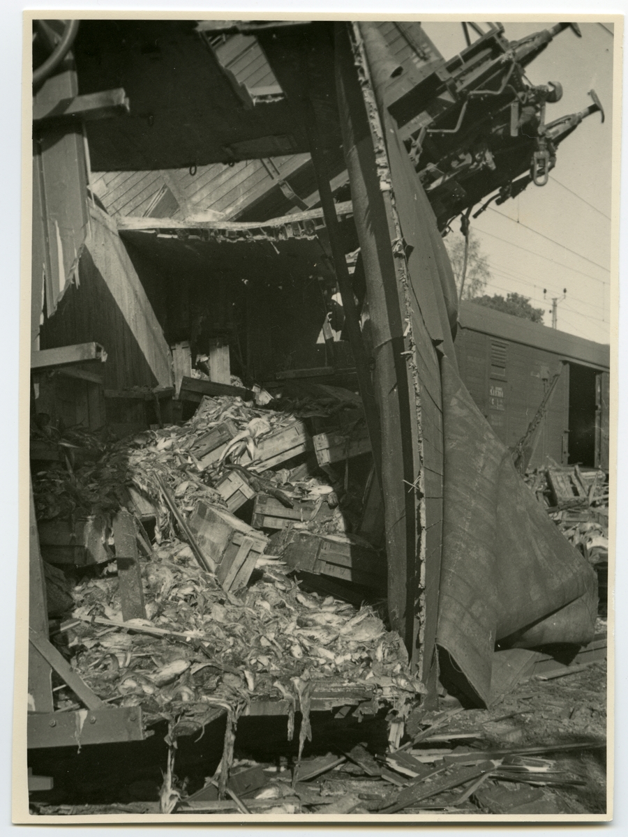 Urspårning natten mellan 2 och 3 oktober 1948. En godsvagn SJ G 37xxx med fisk som syns på bilden.