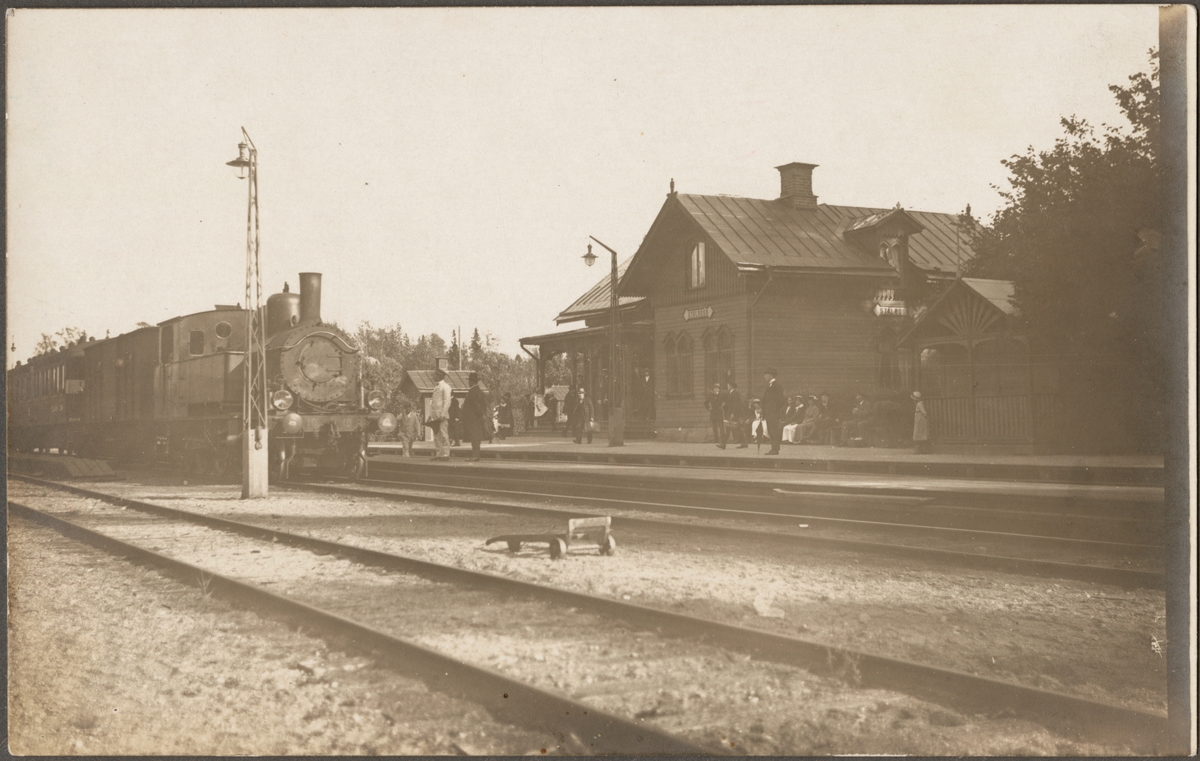 Stålboga station, orten har nu stavningen Stålbåga (2016). Loket i bild är Norra Södermanlands Järnväg, NrSlJ lok 10.