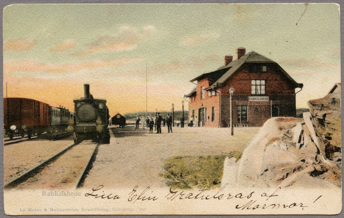 Kolorerat vykort på stationsområdet i Rabbalshede.