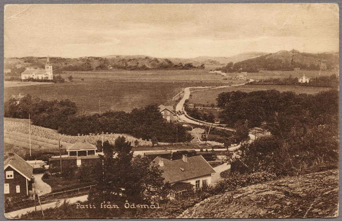 Vy över Ödsmål med järnvägsstationen närmast.