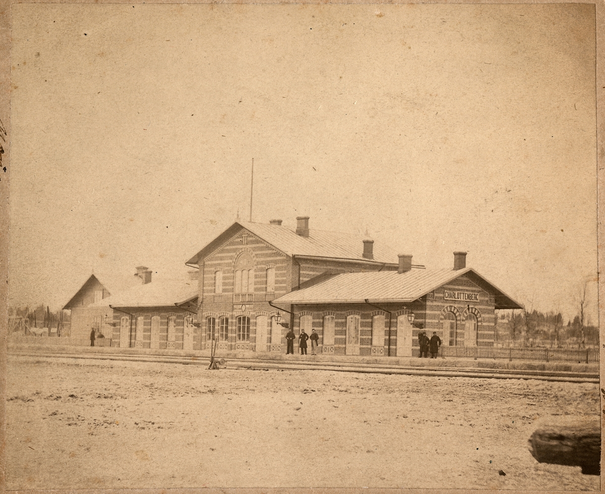 Vy vid Charlottenberg. Stationen öppnad 1865. Eldrift österut 1937, västerut mot Norge 1951.Stationshuset moderniserades och utrustades med värmeledning 1931. Lokstallet byggdes ut 1879 och 1928 och år 1937 drogs det in värmeledning. Det ena övernattninghuset, 9A, tillbyggdes 1883. I byggnaden är även tulllokalerna inrymda. Även övernattninghuset nr 8 utrustades med värmeledning 1931.Mekanisk växelförregling.Öppnad 4/11 1865. Hållplats 1/10 1994, men kvar som trafikteknisk station.