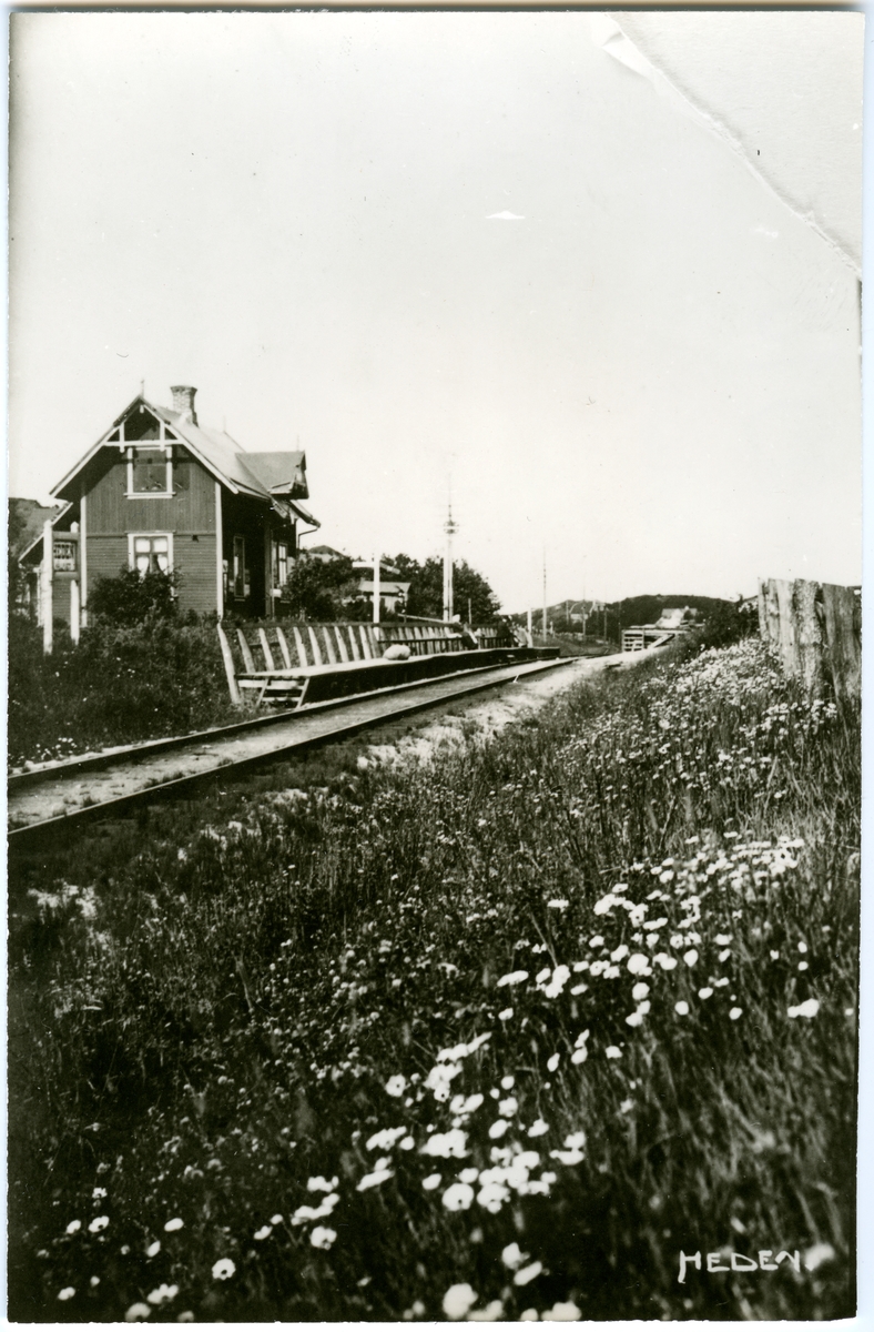 Hållplats anlagd 1902. Stationsbyggnad i trä Ett tidigare väntskjul ersattes i mitten av 1930-talet av den från Stommen flyttade kuren. På norra sidan av spåret, mitt emot träplattformen, fanns en lastbrygga