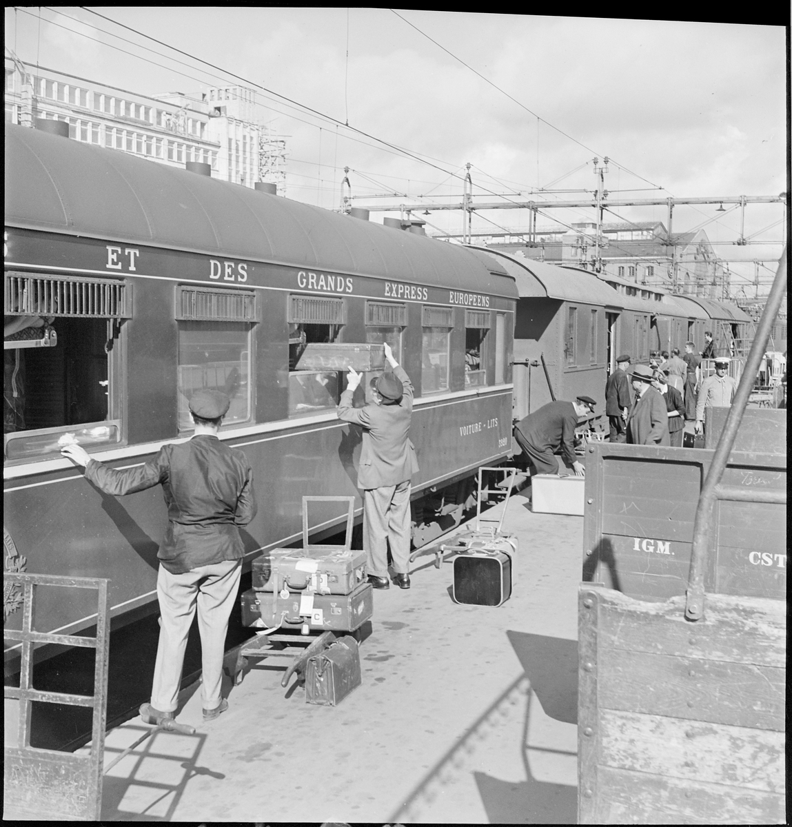 Titel: Vagn med text Wagons lits et des grands express europeens. Resande med Nordexpressen.