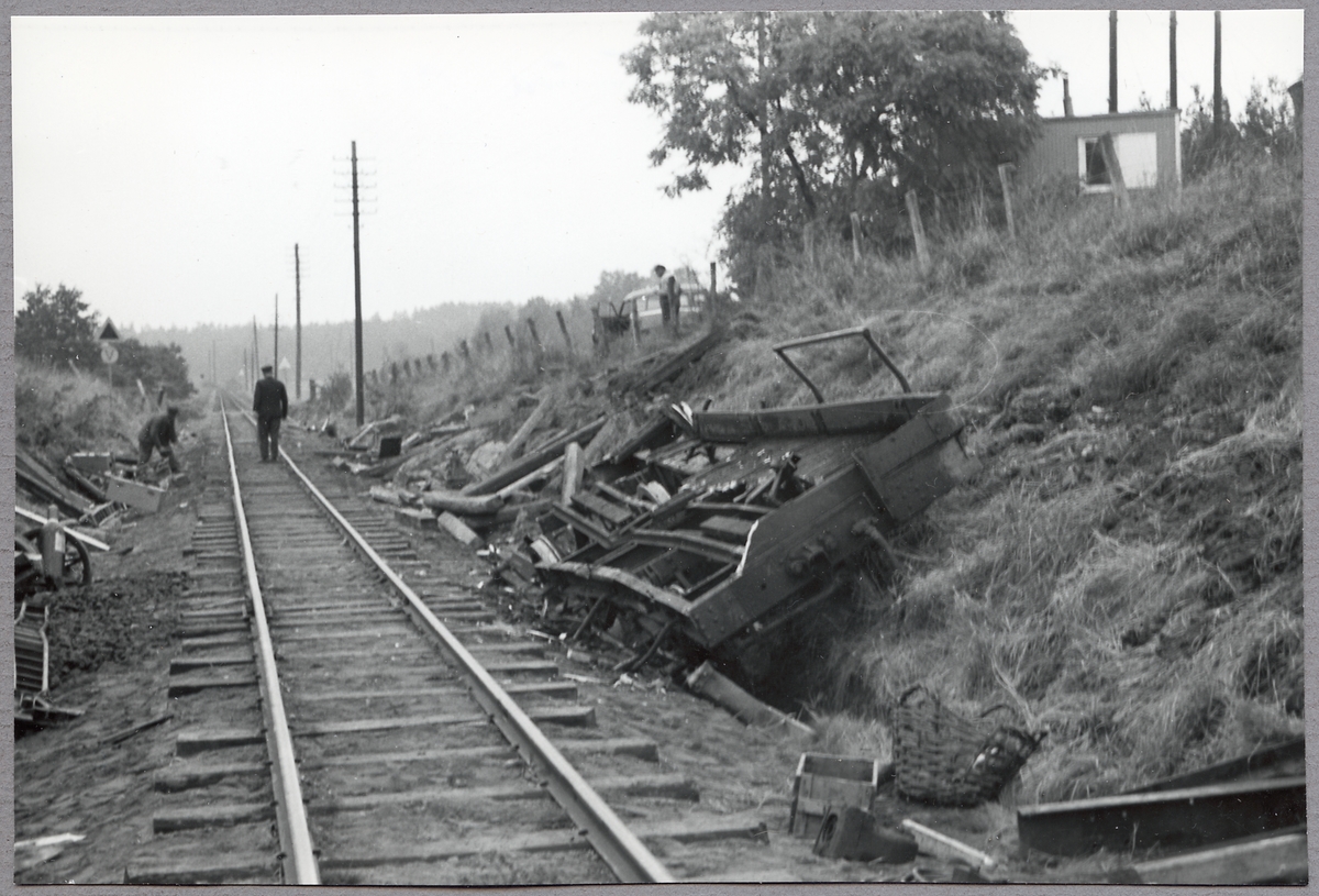 Godsvagn urspårad på linjen mellan Överum och Gamleby.