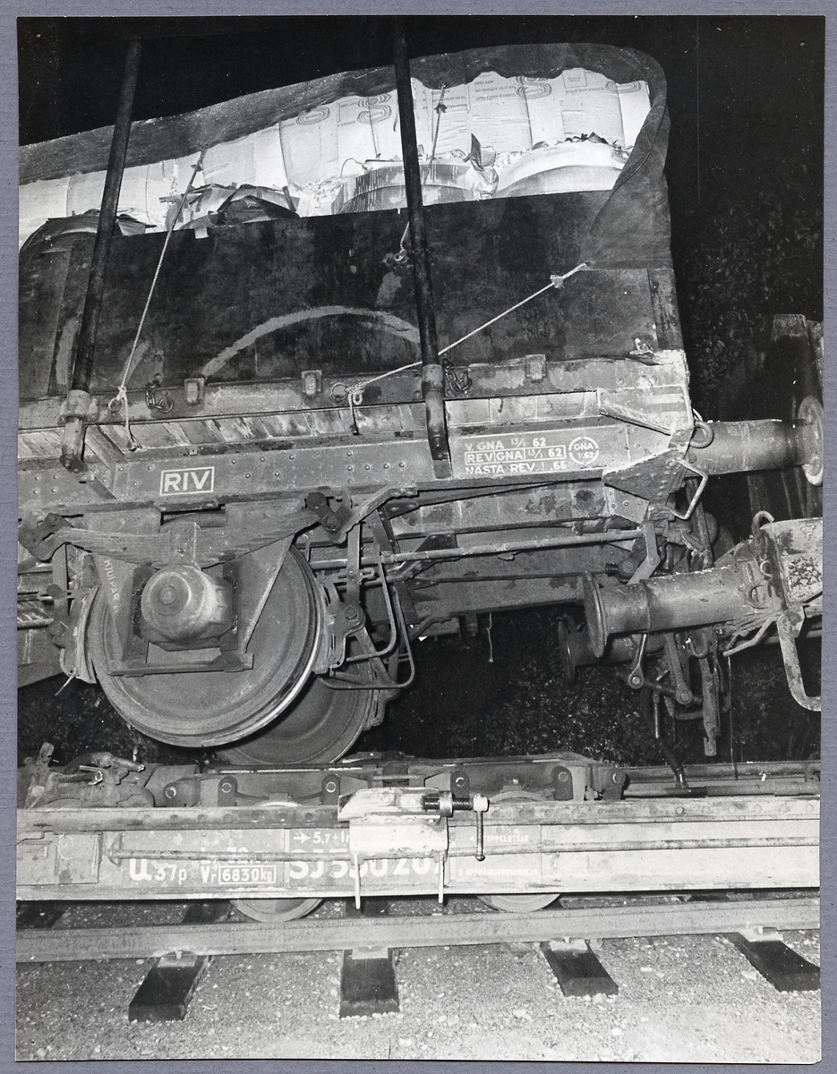 Stor tågurspårning på linjen mellan Hultsfred och Vena. Överföringsvagn Statens Järnvägar, SJ Q37p.