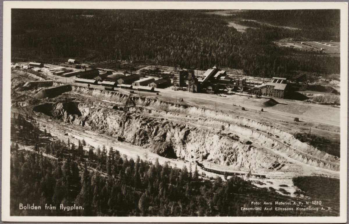 Flygfoto över Boliden gruvområde.