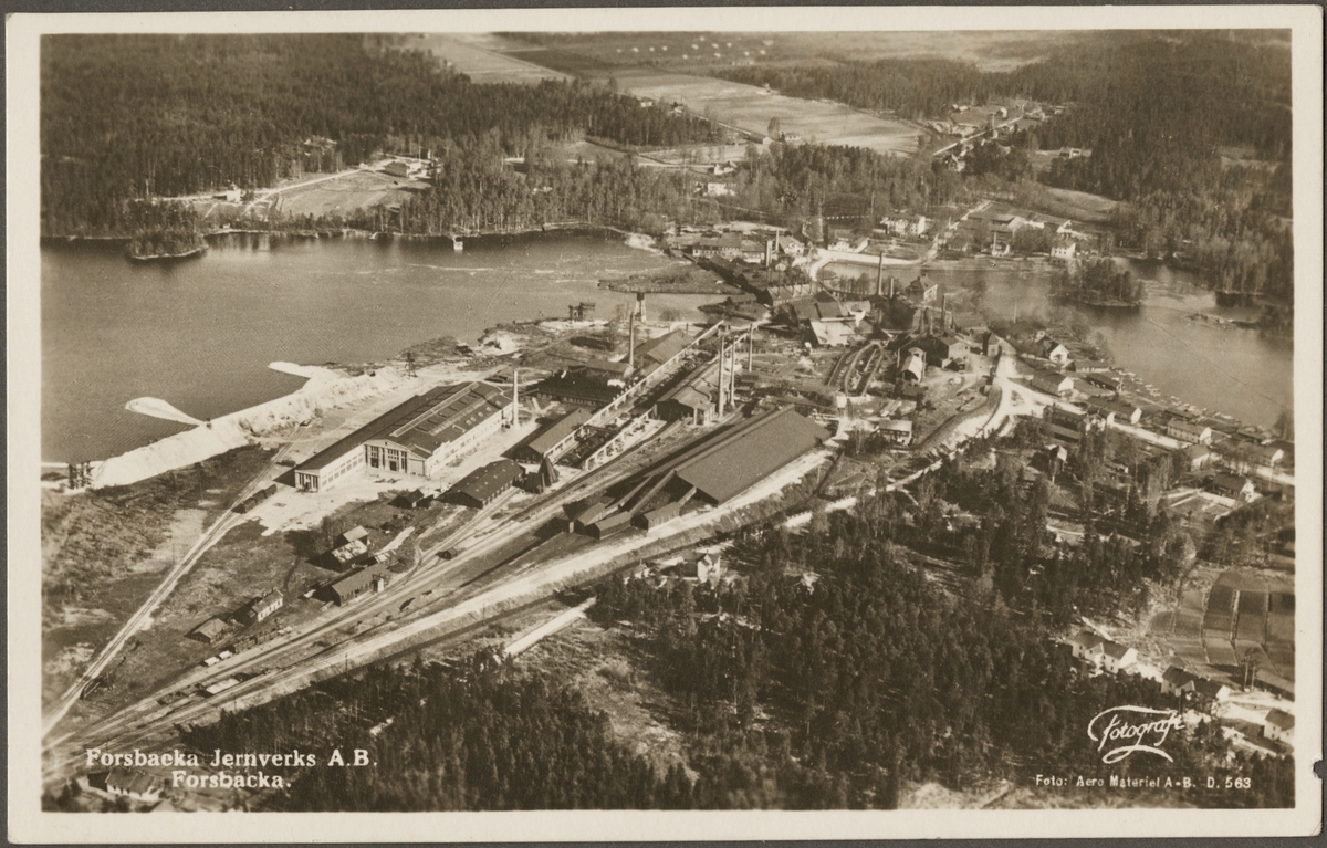 Flygfoto över Forsbacka järnverk vid Storsjön.