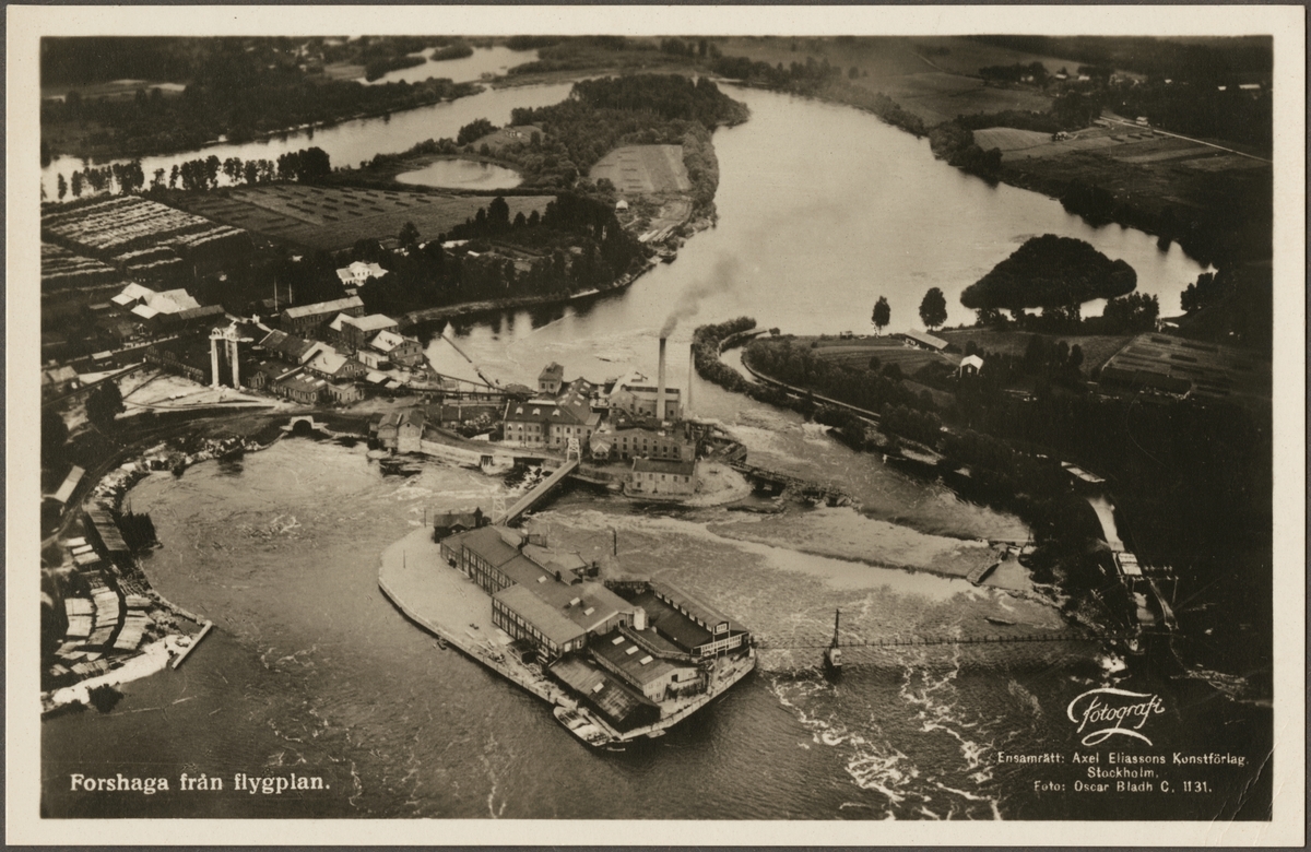 Flygfoto över Forshaga industriområde och Klaraälven.