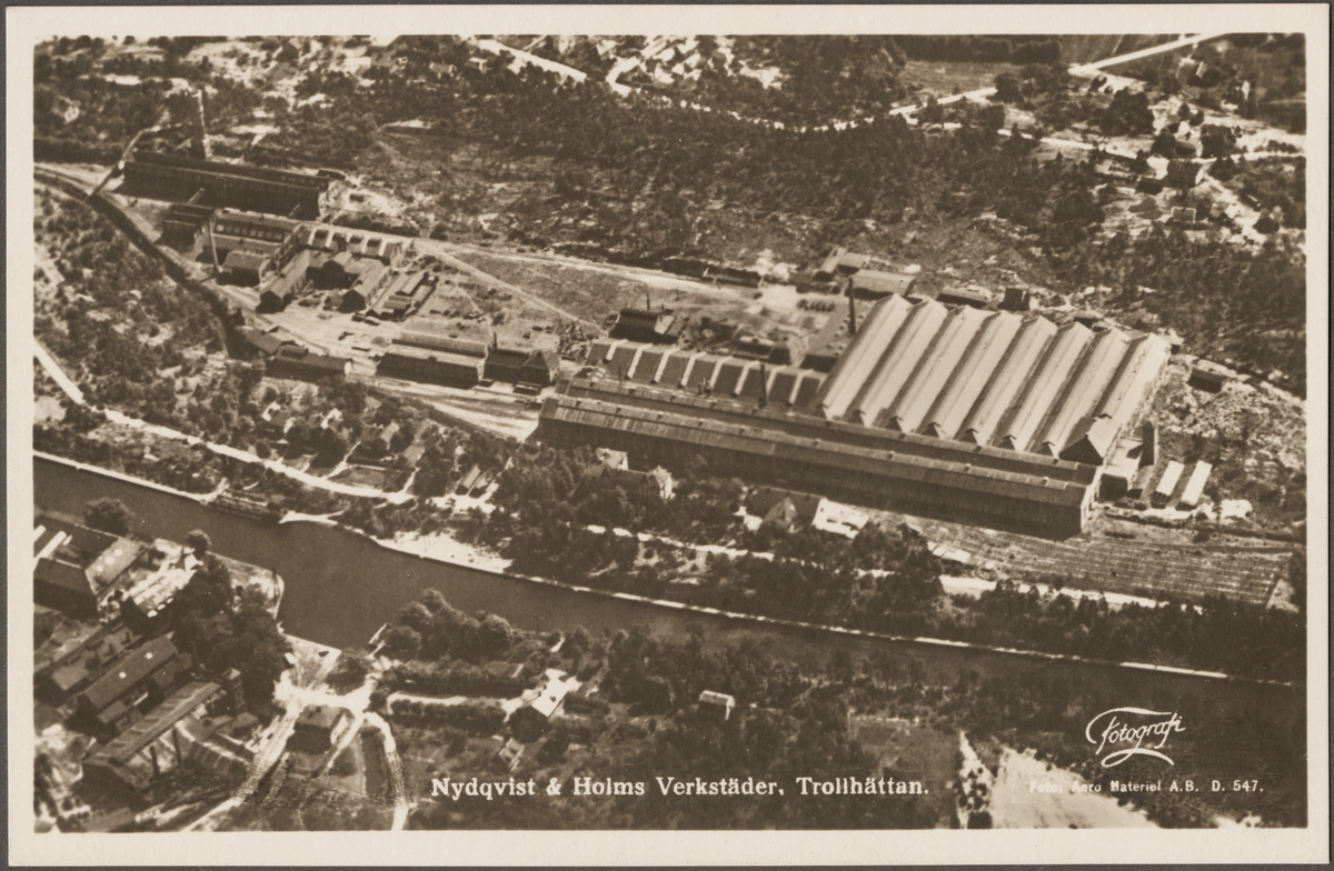 Flygfoto över Nohab industriområde i Trollhättan vid Götaälv.