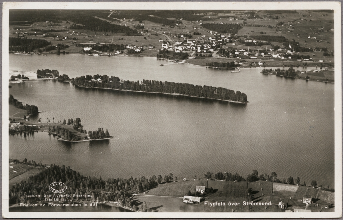 Flygfoto över Strömsund stad och sjön Russfjärden.