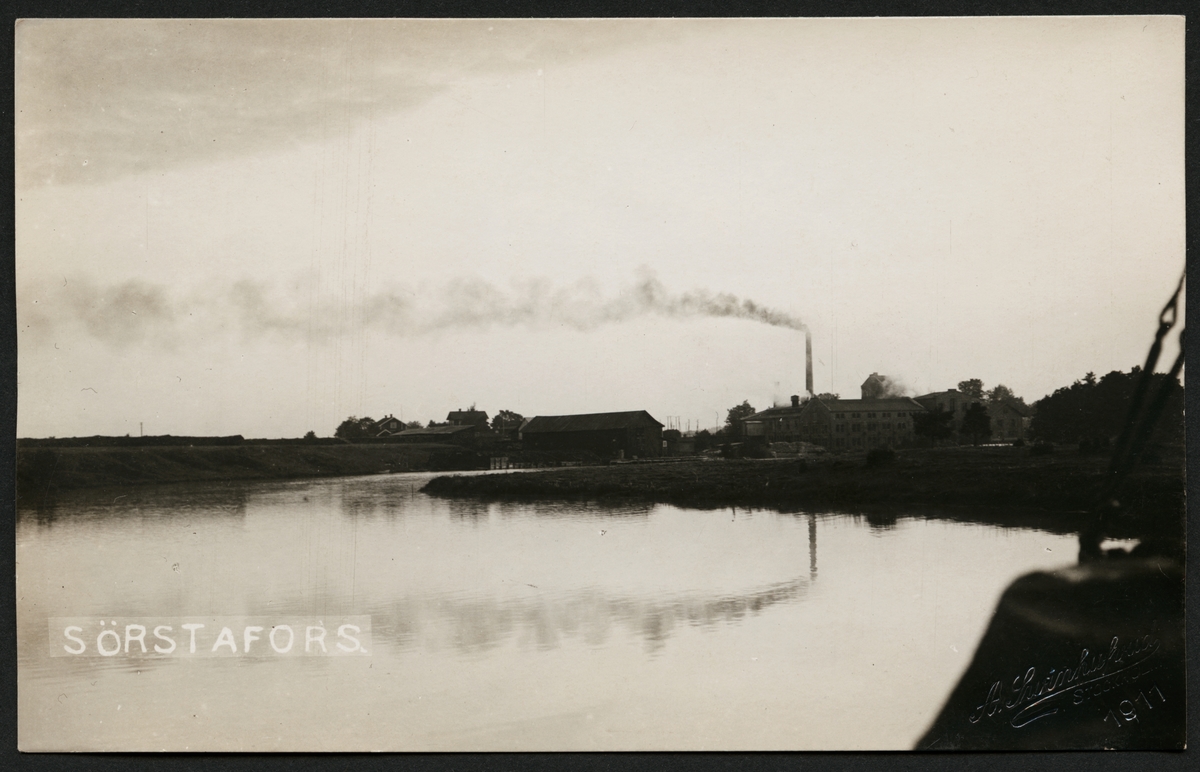 Kolbäcksån vid Sörstafors. Pappersbruk i bakgrunden.