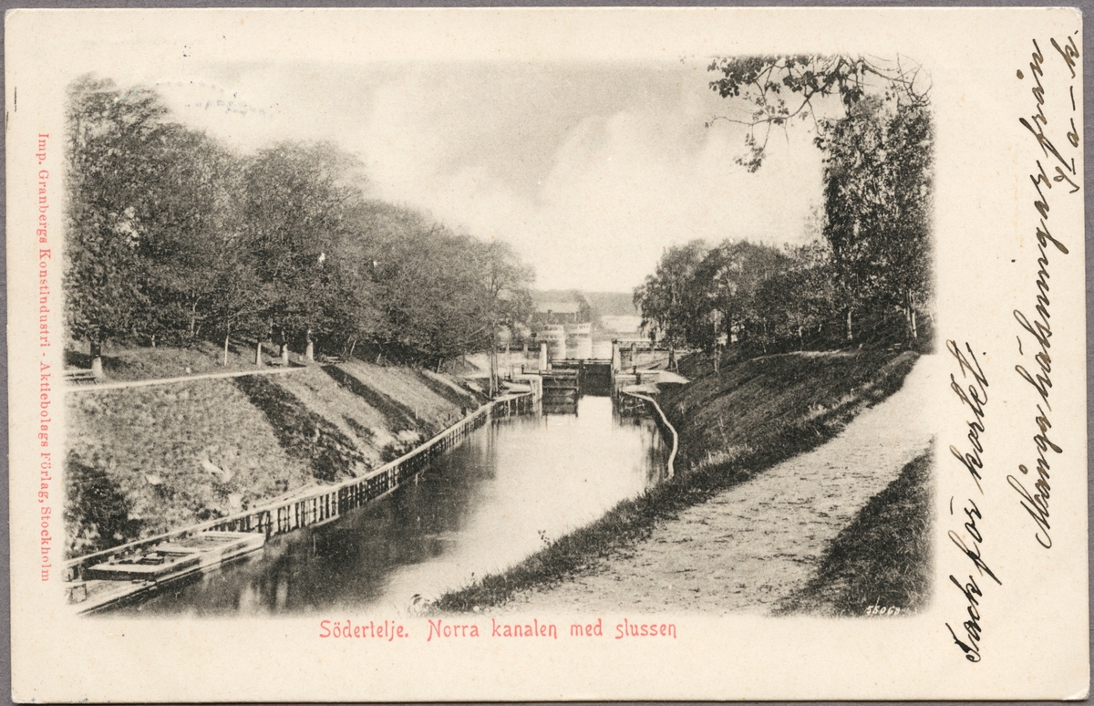 Vy över kanal och sluss.