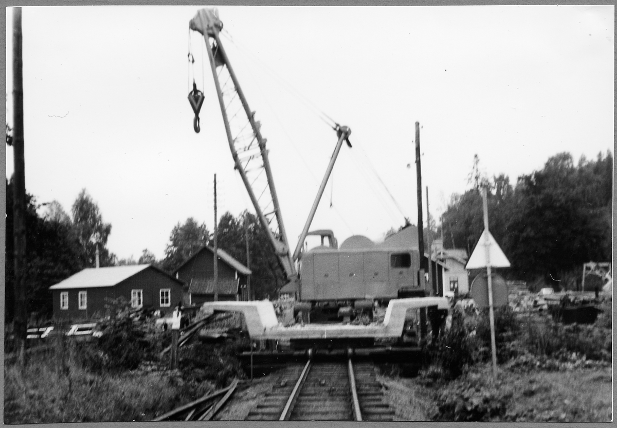 Byte av järnvägsbro över Storån vid Storsjö. Normalspårsbron lyfts dit.