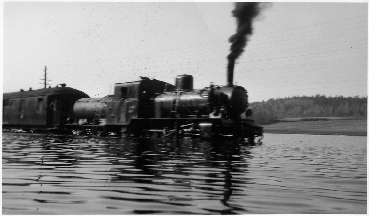 Översvämning i Uknadalen på linjen mellan Storsjö och Nelhammar.