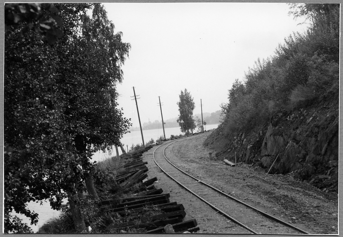 Nya linjesträckningen utmed Båtsjön Forsaström - Falerum. Slipers för normalspår utlagda.