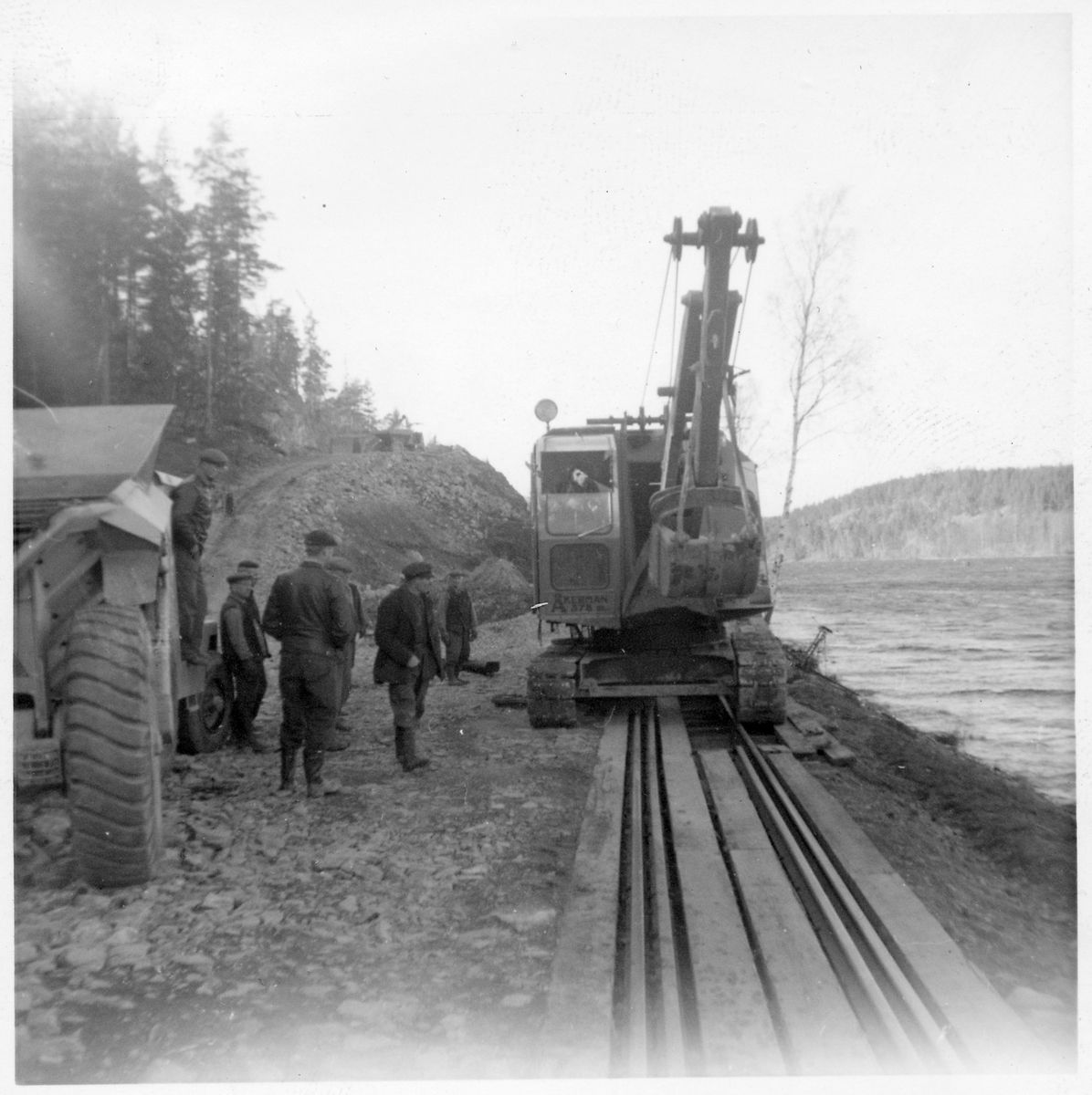 Linjen vid Båtsjön med grävmaskin och dumpers.