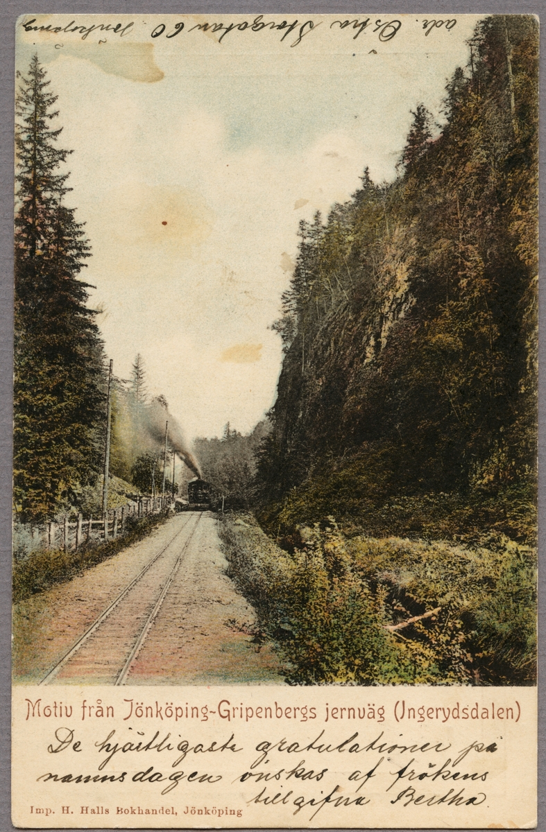 Järnvägslinje mellan Brötjemark (Bröttjemark) och Ingerydsvägen med trafikerande tåg.