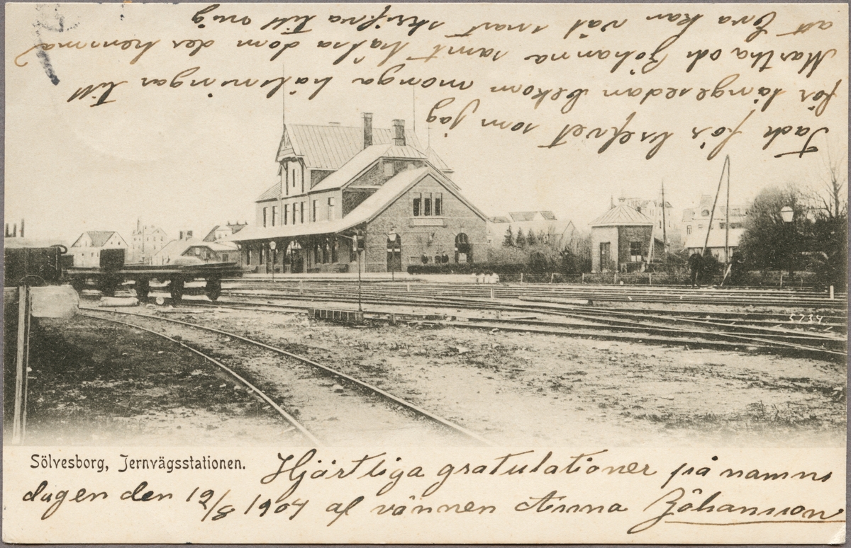 Vy på stationsområde och bangård.