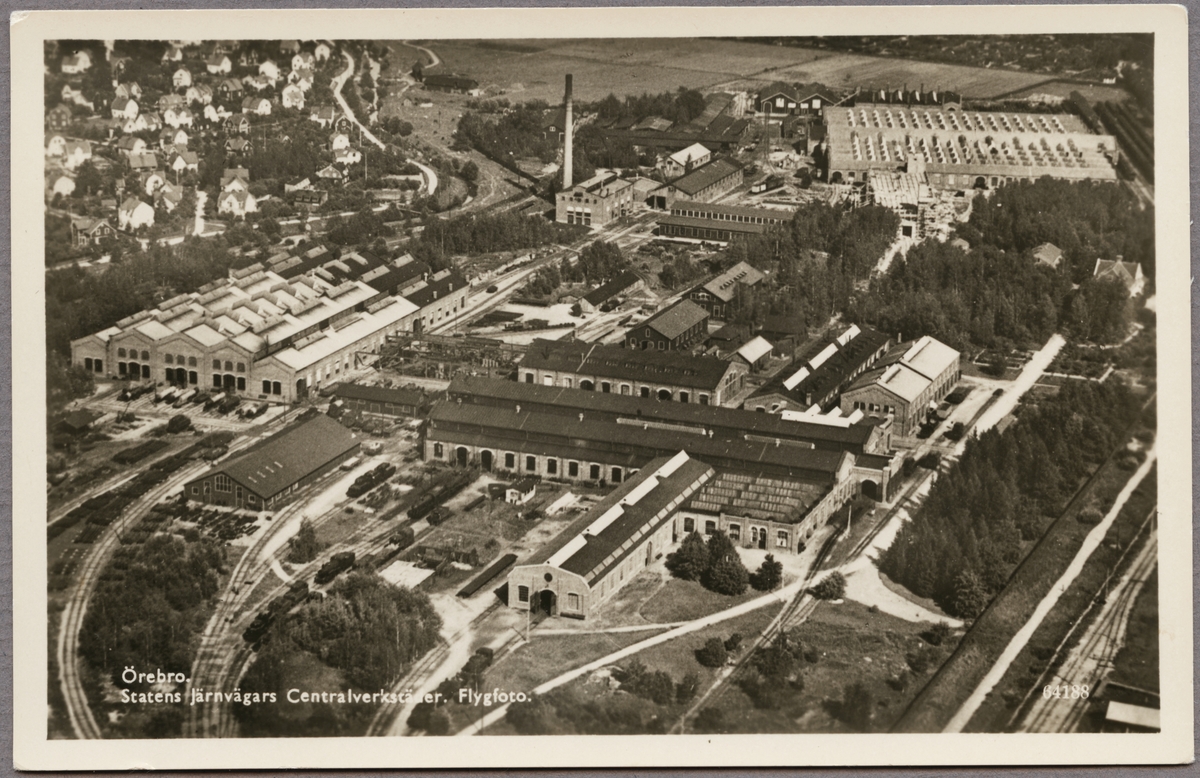 Flygfoto över Statens järnvägars Centralverkstad i Örebro.