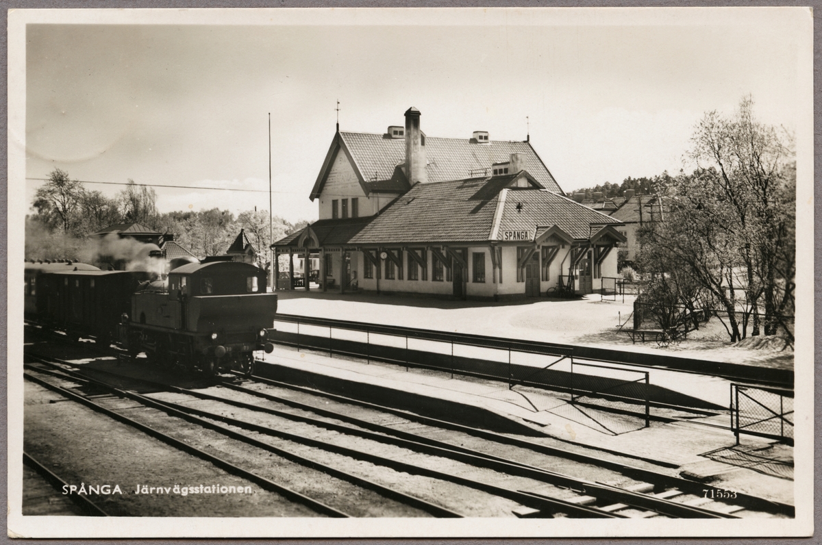 Spånga järnvägsstation. Stockholm - Västerås - Bergslagens Järnvägar, SWB Y3 79.