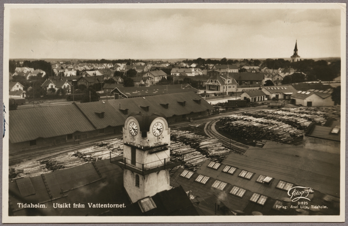 Vy över Tidaholm med järnvägsstationen.