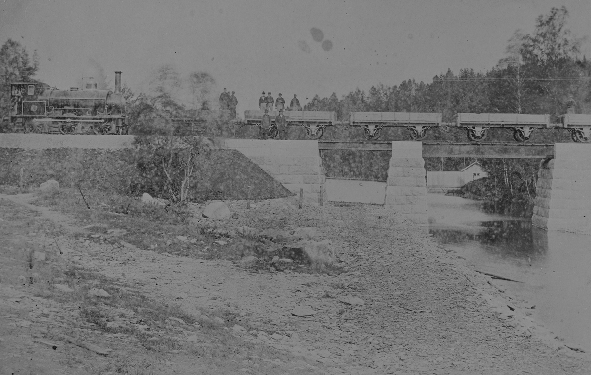 BJ 5 med gruståg på bron över Bredsjöån vid anläggningen.