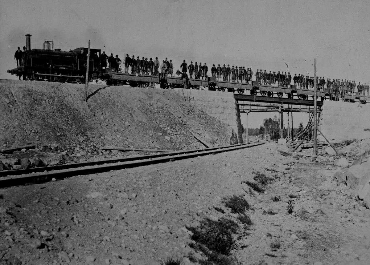 BJ 5 med grusvagnar vid anlägnig av BJ korsningen med FLJ vid Hörk.