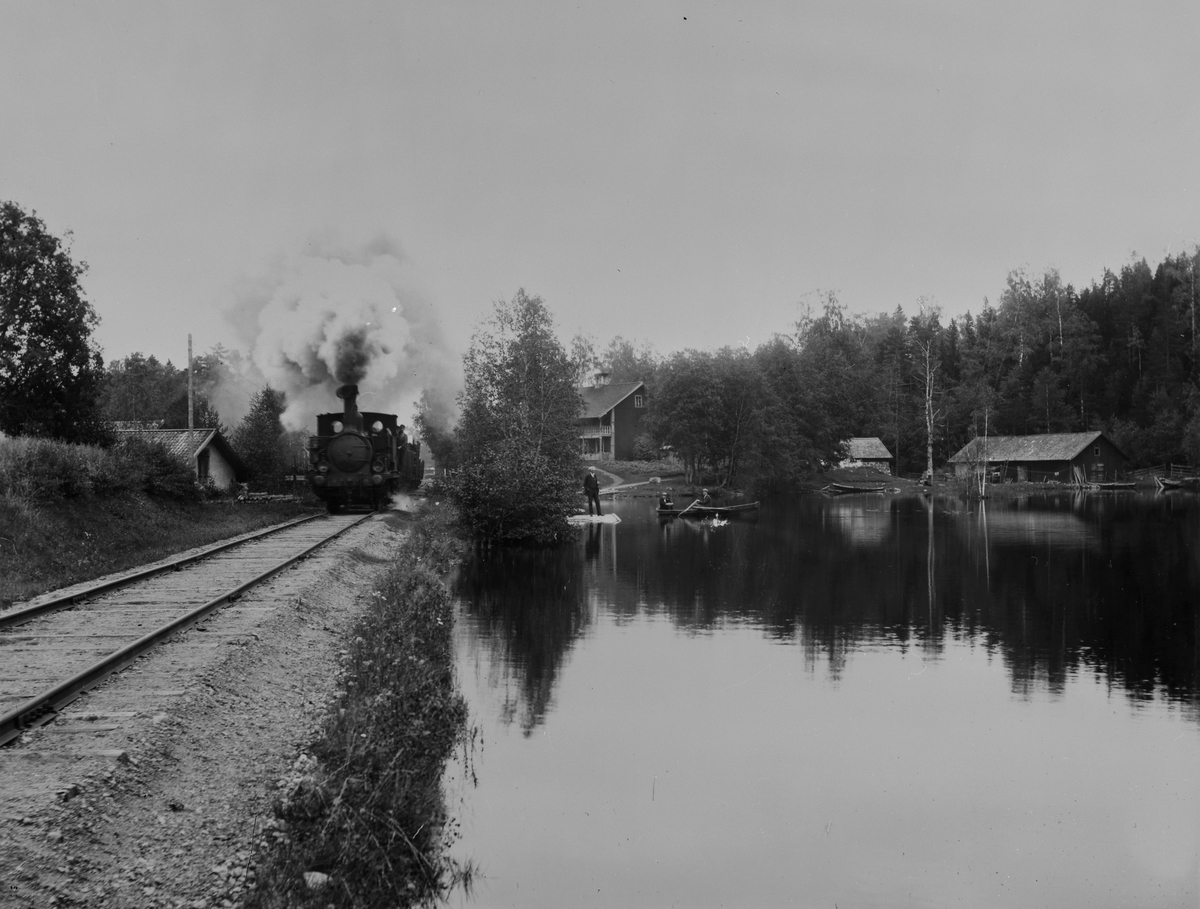 BKJ, Bånghammars - Klotens Järnväg. FLJ lok 13 med tåg har just lämnat Kloten på väg mot Bånghammar.