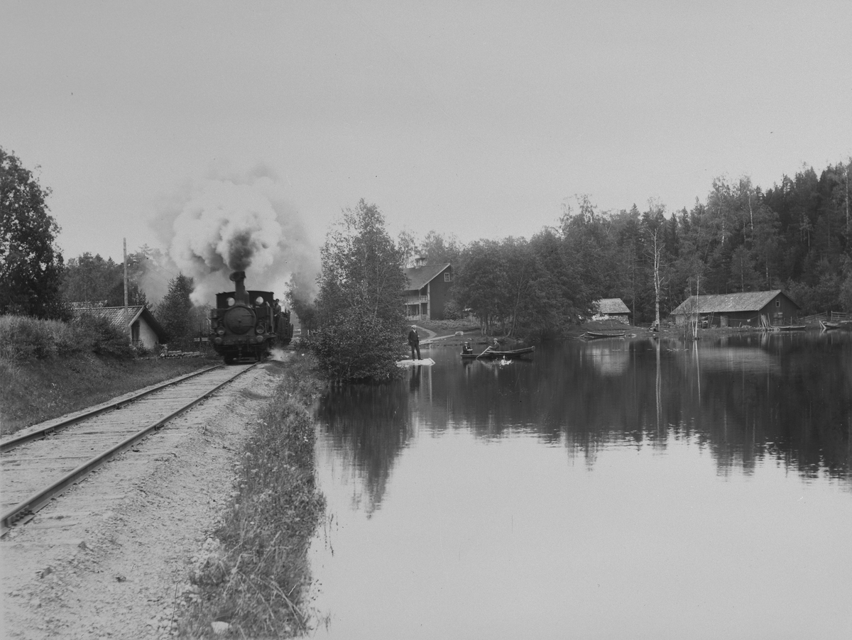 BKJ, Bånghammars - Klotens Järnväg. FLJ lok 13 med tåg har just lämnat Kloten på väg mot Bånghammar.
