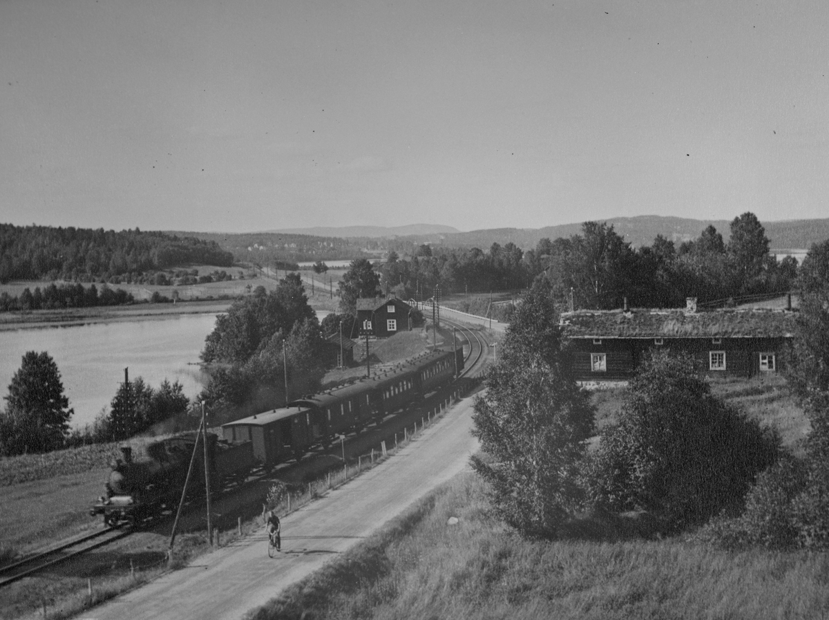 TGOJ, Tfv Grängesberg - Oxelösunds Järnväg. Persontåg vid Sundet och banvaktstugan Rostock. På linjen mellan Ställdalen och Kopparberg.