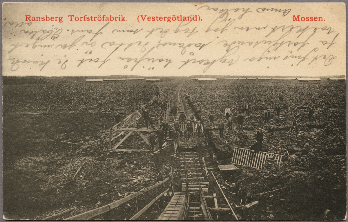 Arbete på Byxmossen vid torvströfabriken i Ransberg.