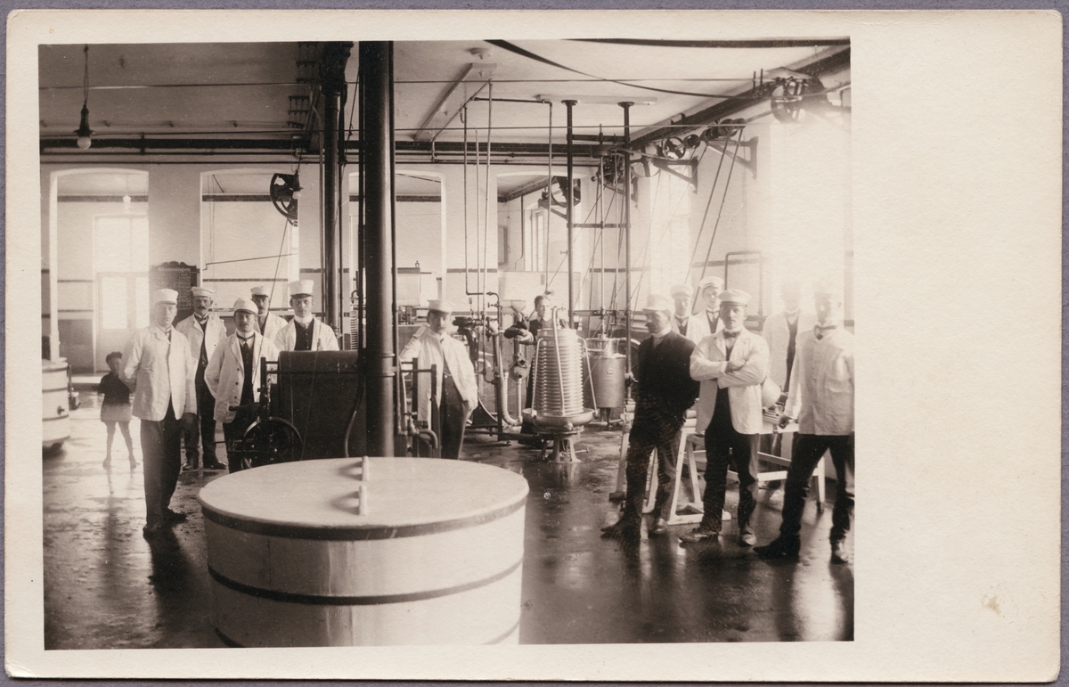 Titel: Interiörbild från ett mejeri med personalen uppställda.