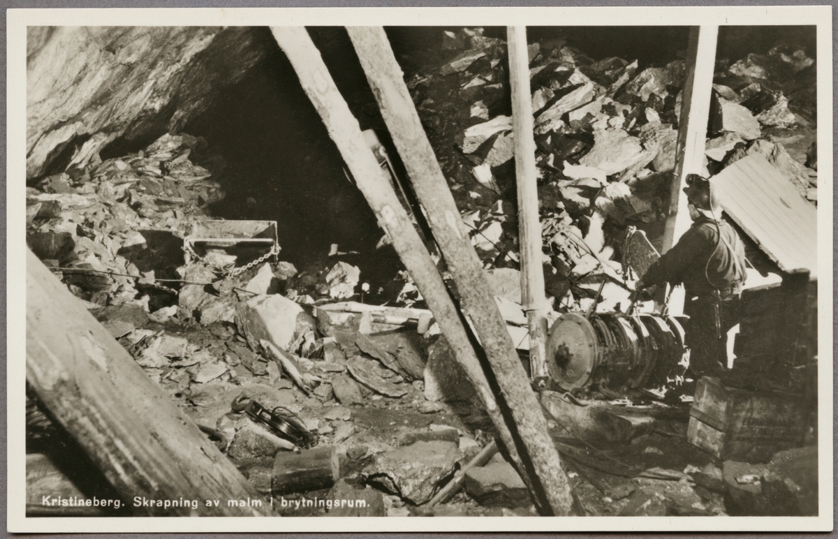 Kristinebergsgruvan. Skrapning av malm i brytningsrum.