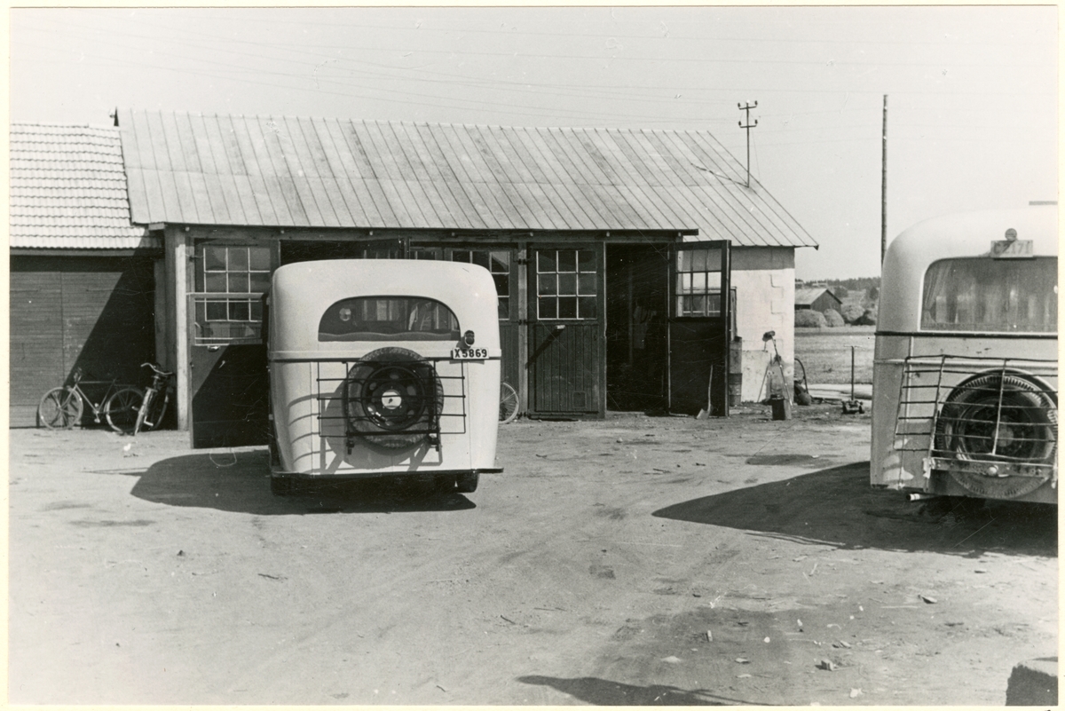 Titel: Bussar med registreringsnummer X5869 och C2171 vid garaget.