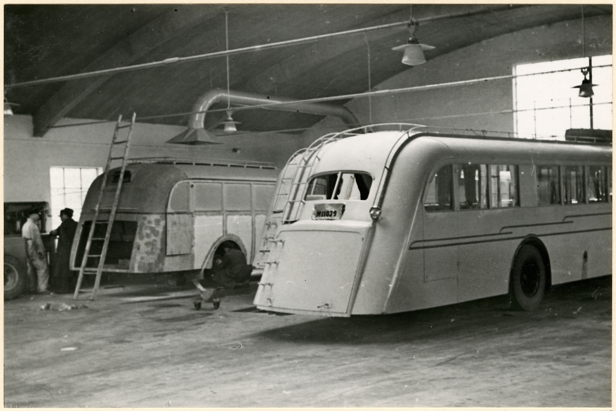 Titel: Buss med registreringsnummer M11039 i bussgarage.