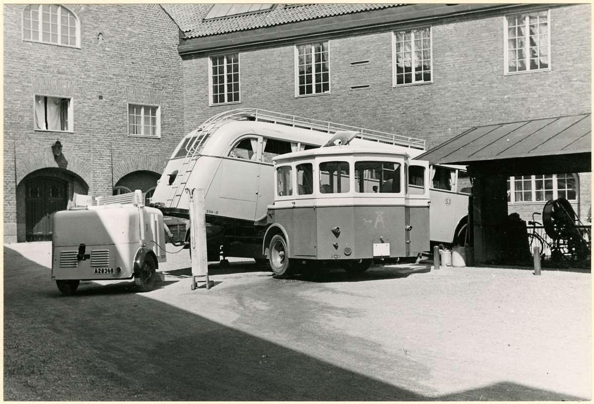 Statens Järnvägar, SJ buss 394-A bakända lyfts upp en truck.