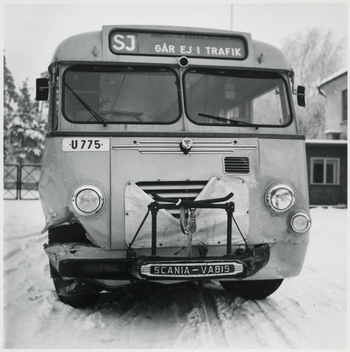 Scania-Vabis B62 buss inne för reparation vid Svenska Karosseriverkstäderna, SKV. Statens Järnvägar, SJ buss 2201.