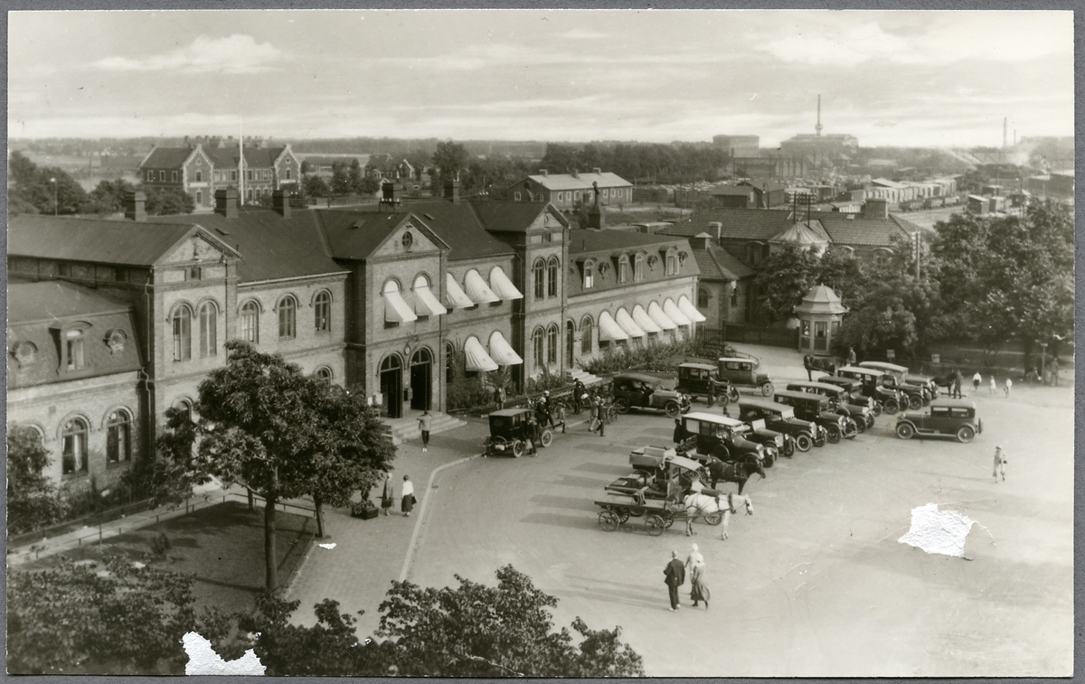 Fordon från 1910-1920 talet parkerade framför Halmstad station.