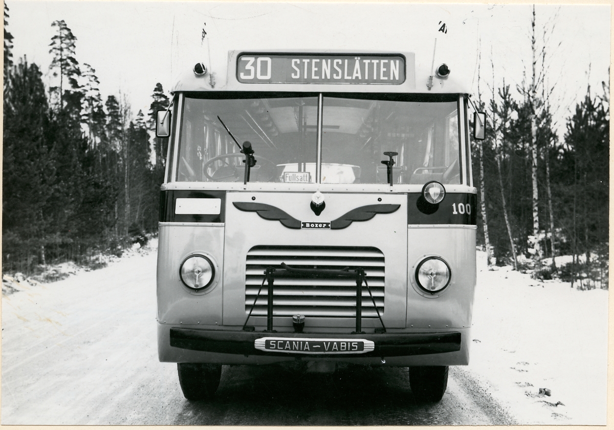 Titel: En Scania-Vabis buss med boxerkaross. Destination Stenslätten.