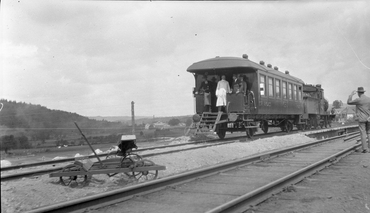 Göteborg-Borås Järnväg, GBJ C 107 med lok på vägport.