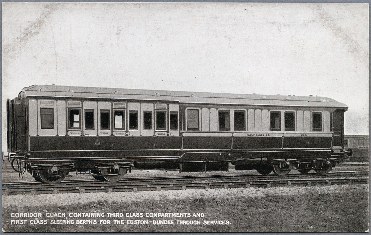 Sovvagn och tredje klass personvagn, på linjen Euston - Dundee.