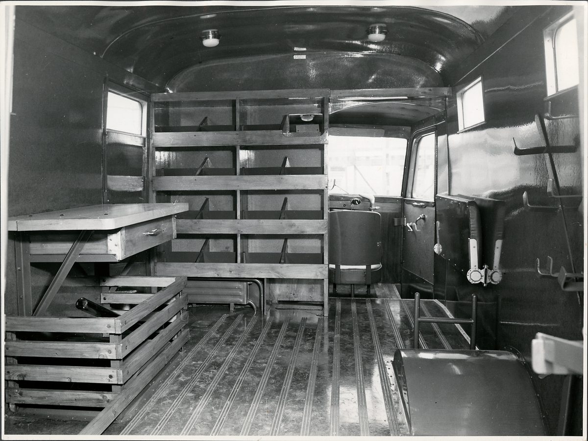 Titel: Inredningen i ett elrevisionsfordon hos Statens Järnvägar.