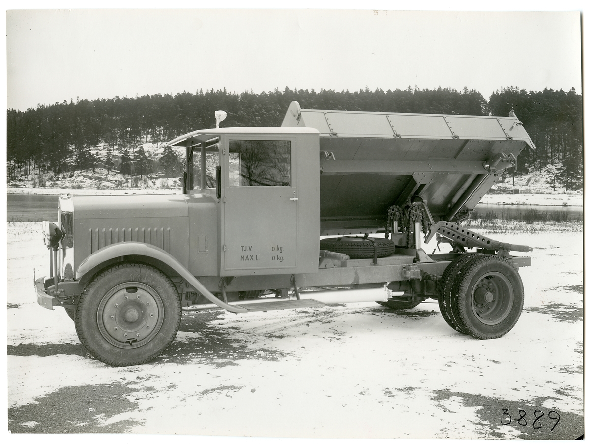 Titel: Scania-Vabis lastbil från 1928 med trevägs hydraultipp.
