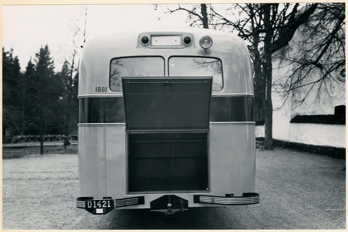 Statens Järnvägar, SJ buss 1881 med öppen baklucka. Registreringsnummer D1421.