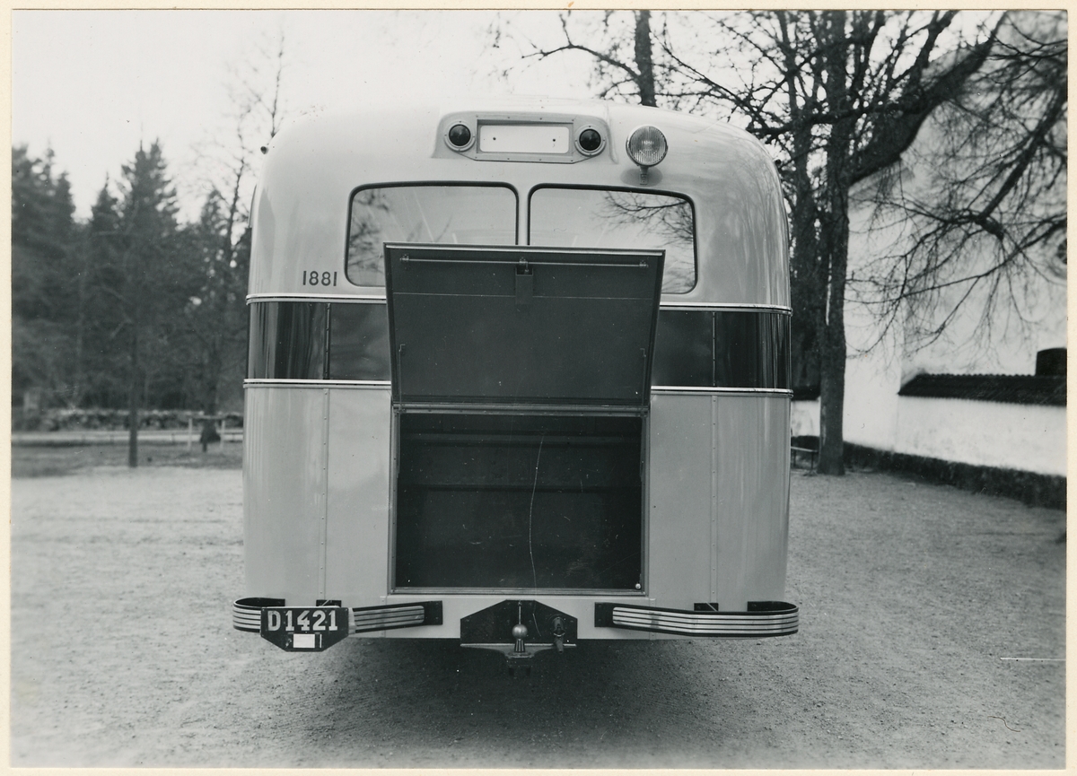 Statens Järnvägar, SJ buss 1881 sedd bakifrån. Igenkänningsmärke D1421.